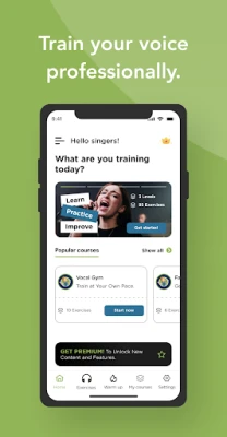 You can select your voice type: (Baritone, Bass, Tenor, Alto, Mezzo, Soprano, Mezzo-soprano) and thus customize the exercises to obtain better results. If not sure what’s your voice type, you can take a test inside the app.