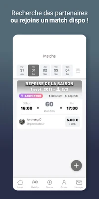 Consulte les matchs proposés par les autres joueurs. Dès que tu as trouvé le match qu'il te faut, inscris-toi !