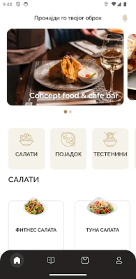 Concept не е само услуга за достава на храна, туку и ресторан каде добрата услуга е спој со вкусните задоволства. Нашата Concept мобилна апликација Ви ги нуди следниве можности: