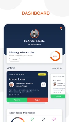 8. Overview / Dashboards – Overview or Dashboard for the application shall show a basic summary of Employee’s Requests, its approval status, Time attendance details, Leave Details, Document Details, and Notifications.