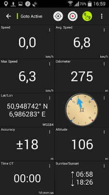 • Tripmaster with fields for odometer, average speed, bearing, elevation, etc.