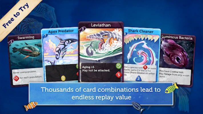 Based on the hit board game, Oceans offers a beautifully crafted strategy game experience. The reef and 20 deep cards are completely free to play (and ad-free!), and you may also join one multiplayer game per day free. A one-time upgrade to the Complete Game features 87 Deep Cards, 21 Scenarios, and multiple hard AI personalities for endless replay fun. You can now play online against others on any platform, in real time or asynchronously. Purchasing the Complete Game allows you to create your own decks for use in singleplayer and multiplayer, and create your own multiplayer games.