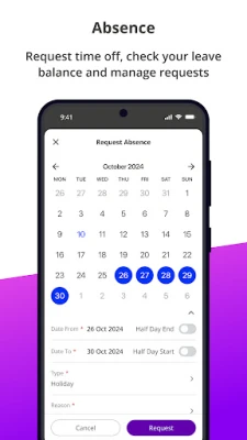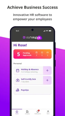 The Staffology HR app empowers employees and managers to efficiently manage HR activities, including absence, timesheets and expenses management.